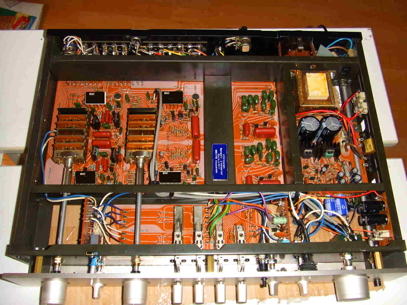 Luxman C12 interior, not updated. Old DML-02 x4 that are broken. This C12 produces noise and hiss. ^
